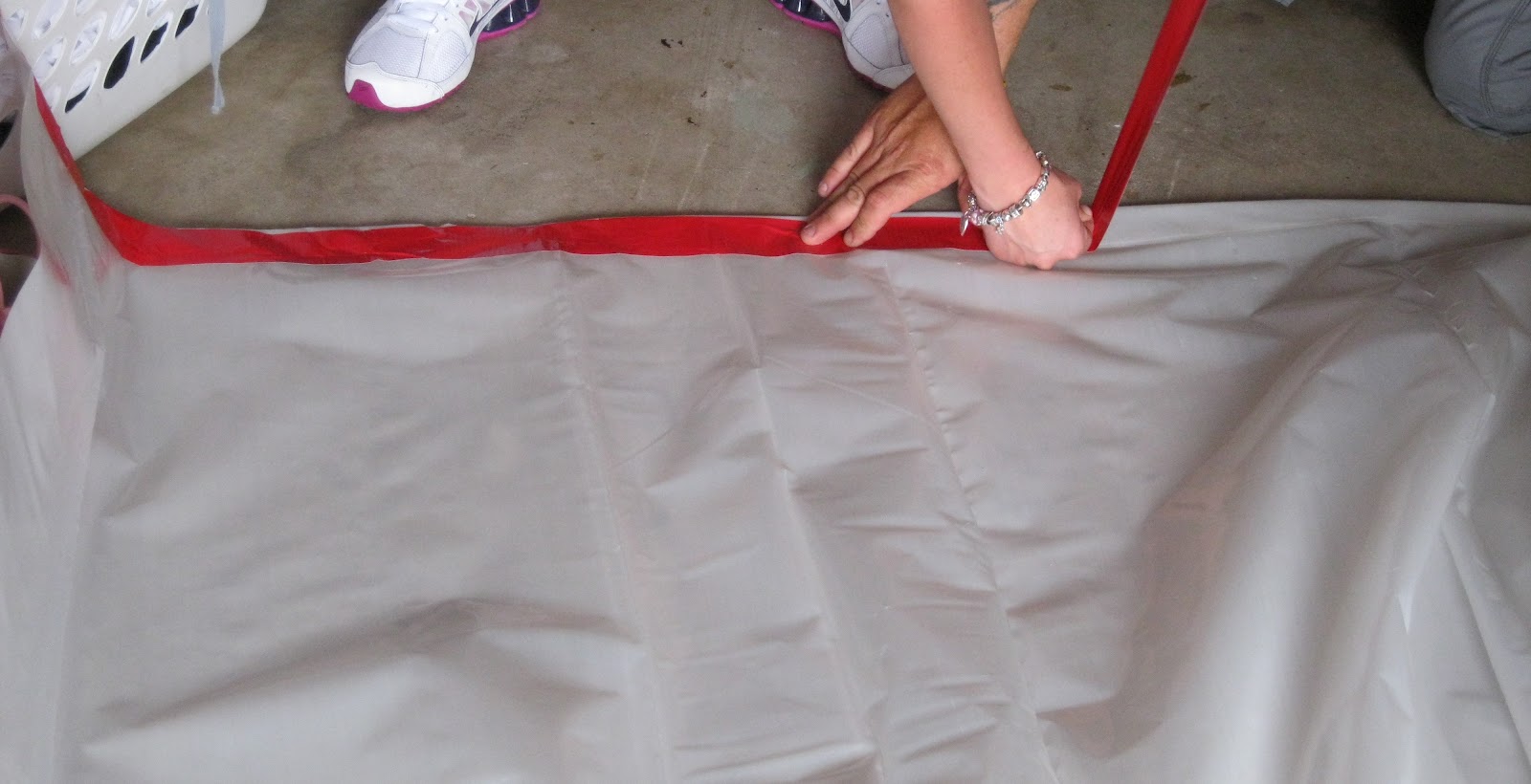 Open plastic have a seam on one side and then tape 3 sides, before you tape we folded to seal better. We also taped each side 2 times to hold better.